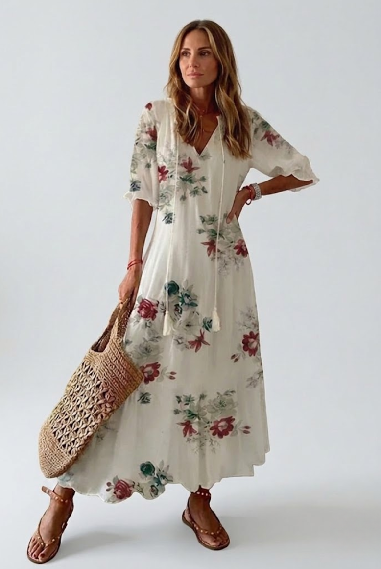 Valeria™ combina romanticismo, textura y elegancia fluida en un vestido pensado para acompañarte temporada tras temporada.