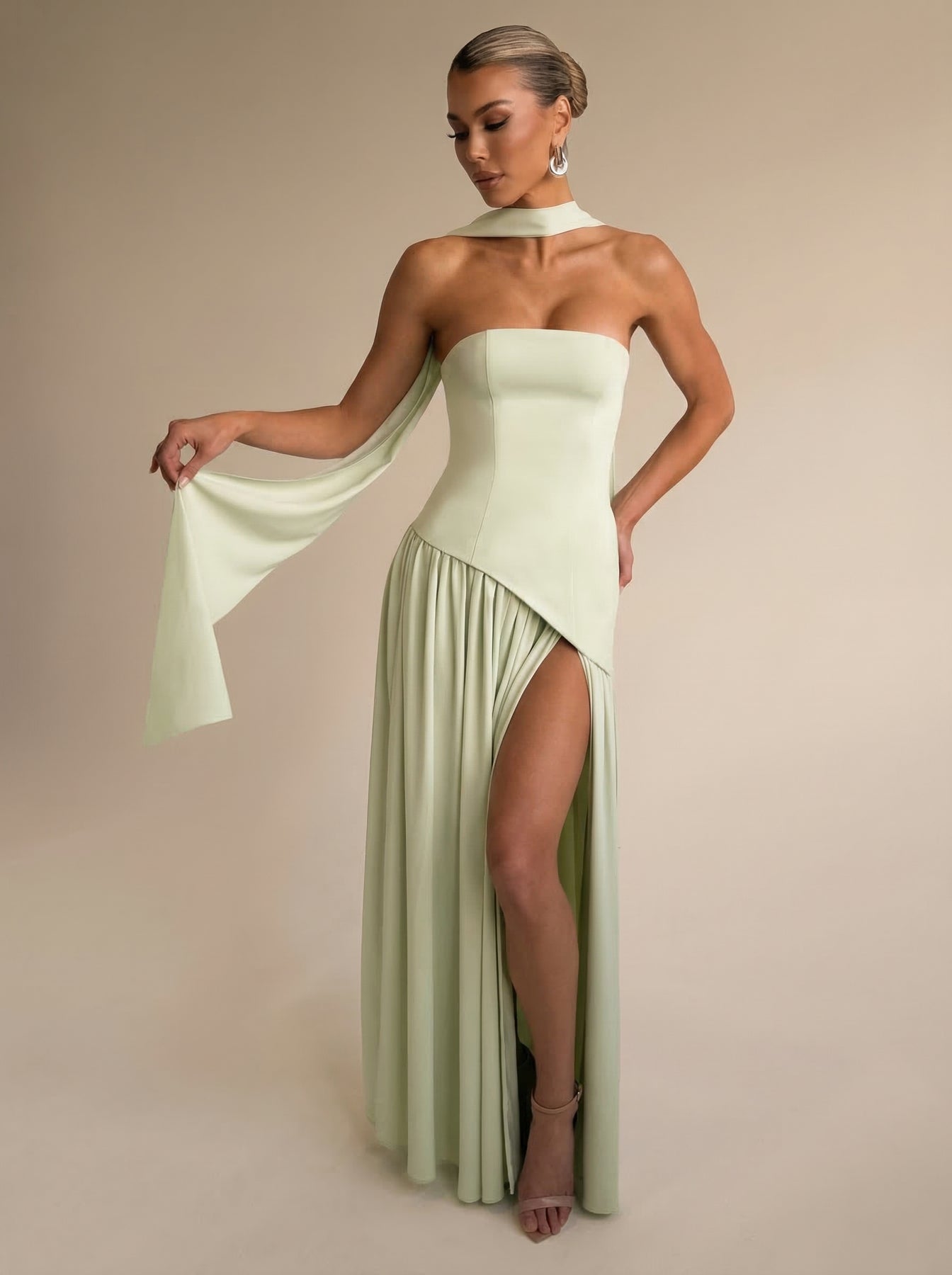 Zadia™ | Vestido halter maxi con espalda descubierta y abertura lateral
